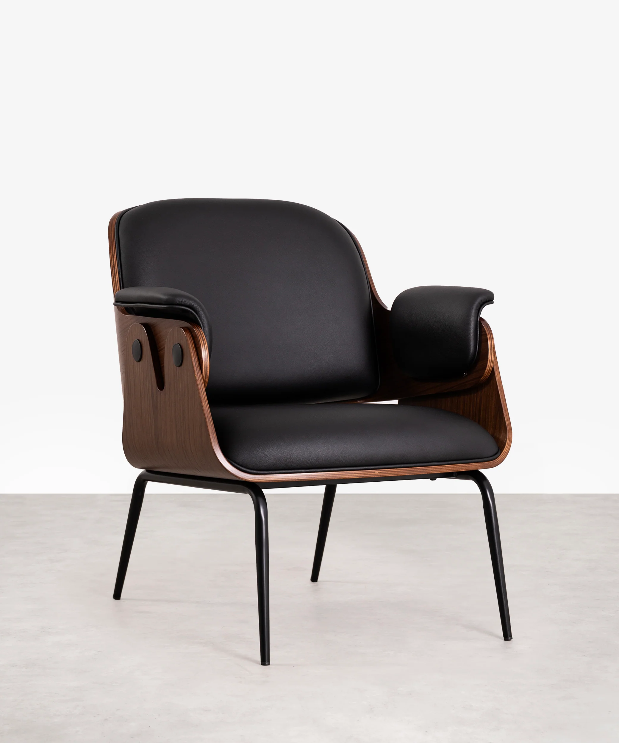 El diseño de la Butaca Elton se destaca con dos opciones de acabado, permitiéndote personalizar tu espacio según tu preferencia. La suave tapicería de lino gris aporta una serenidad relajante, mientras que la polipiel negra agrega un toque audaz y vanguardista. Independientemente de tu elección, la Butaca Elton se convierte en un punto focal en cualquier habitación.