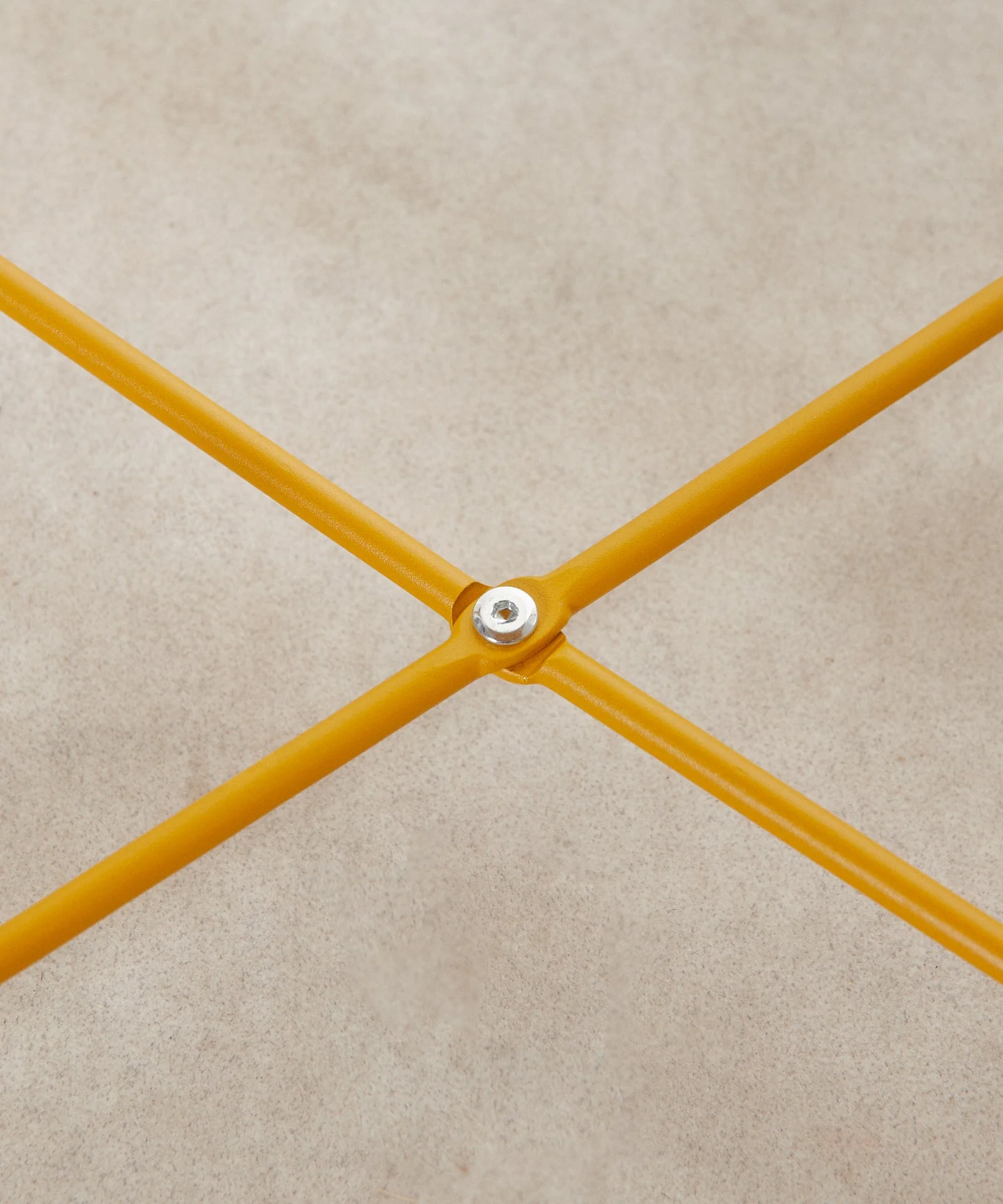 La mesa Noko está fabricada en metal pintado con acabado mate, es resistente, fácil de limpiar y perfecta para el uso diario. Su borde elevado en el sobre añade practicidad, permitiendo usarla como mesa de apoyo o bandeja auxiliar. Una pieza funcional, alegre y con mucha personalidad.