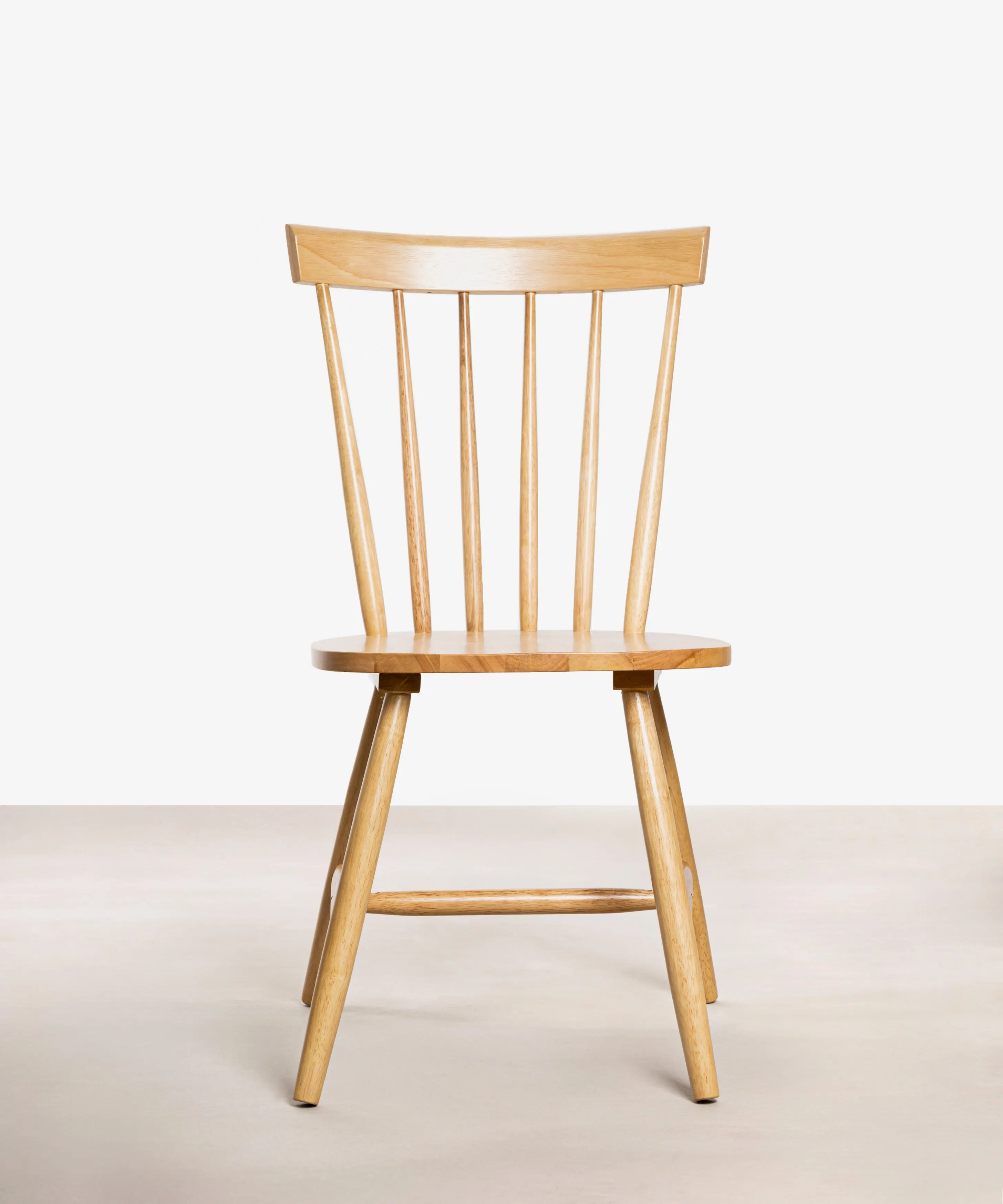 Su respaldo con varillas y sus características patas evocan el estilo nórdico de los años 50. Cada varilla está tallada artesanalmente resaltando así el auténtico carácter de estas sillas. Su estructura de madera hevea maciza es ligera y elegante.